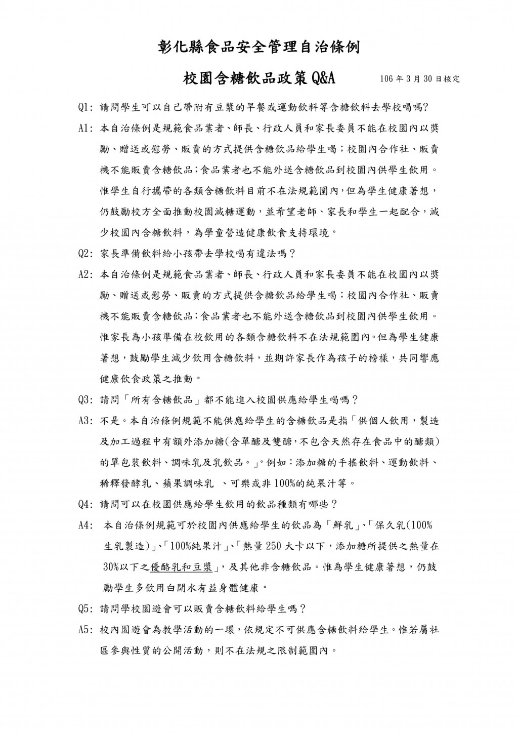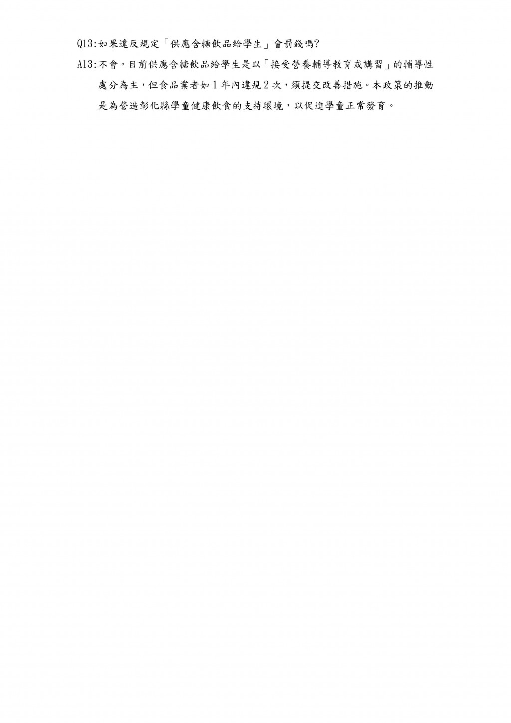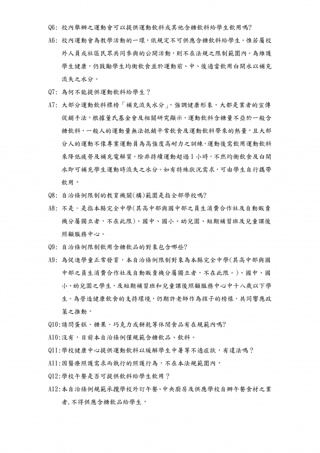 三、請貴校加強向教職員工、家長及學生宣導含糖飲料禁入校園,鼓勵學生均衡飲食並於運動前、中、後適當飲用白開水以補充