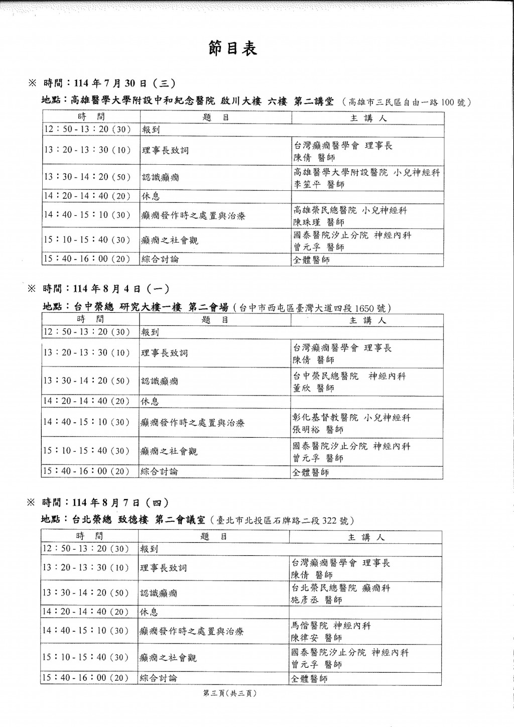 主辦單位:台灣癲癇醫學會、臺北榮民總醫院神經內科、台中榮民總醫院神經
